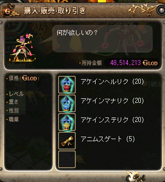 新町のNPCで販売してるアイテム